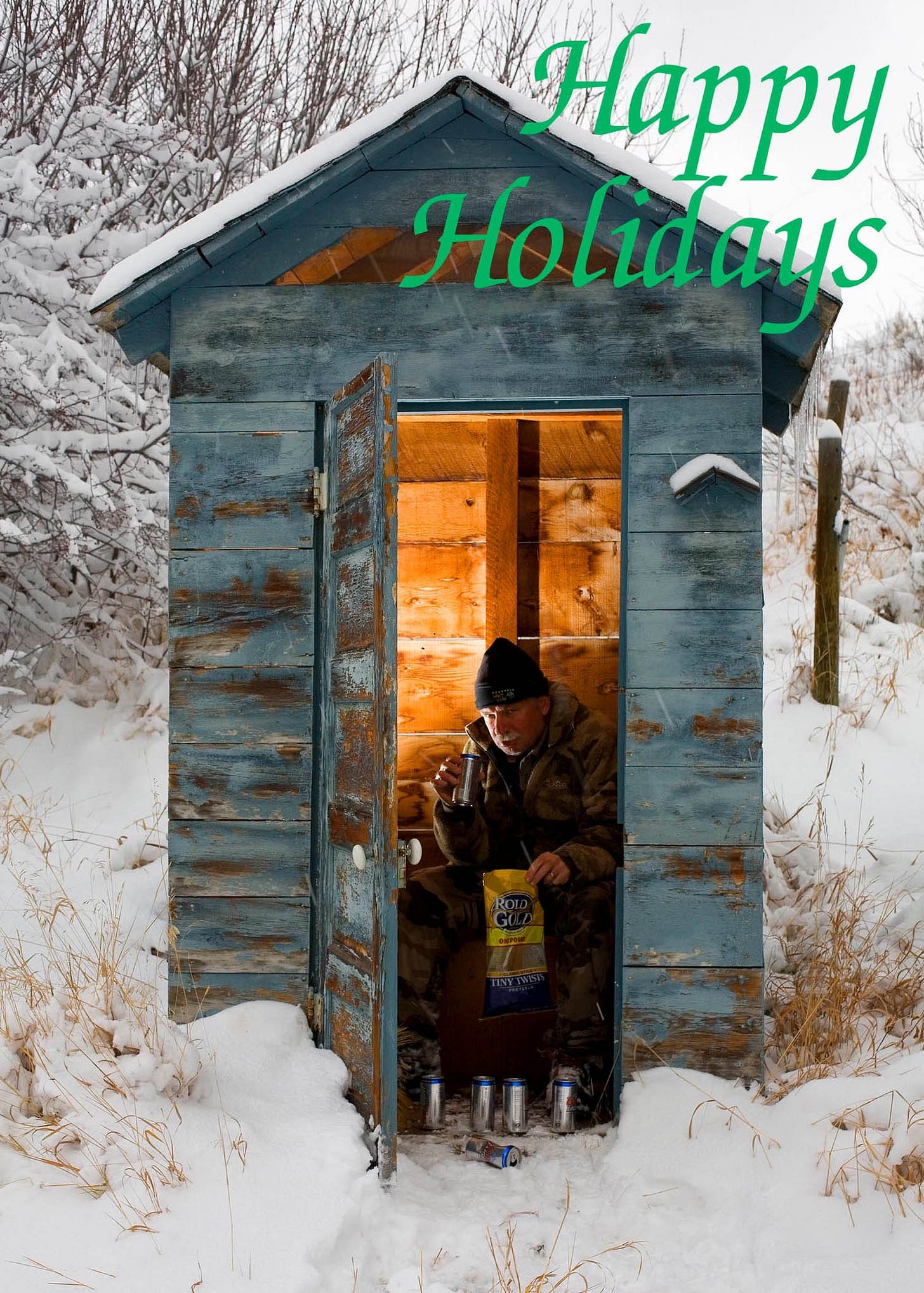 The door’s open, beer’s cold and the seat’s warming for good friends at our place during the Christmas season.